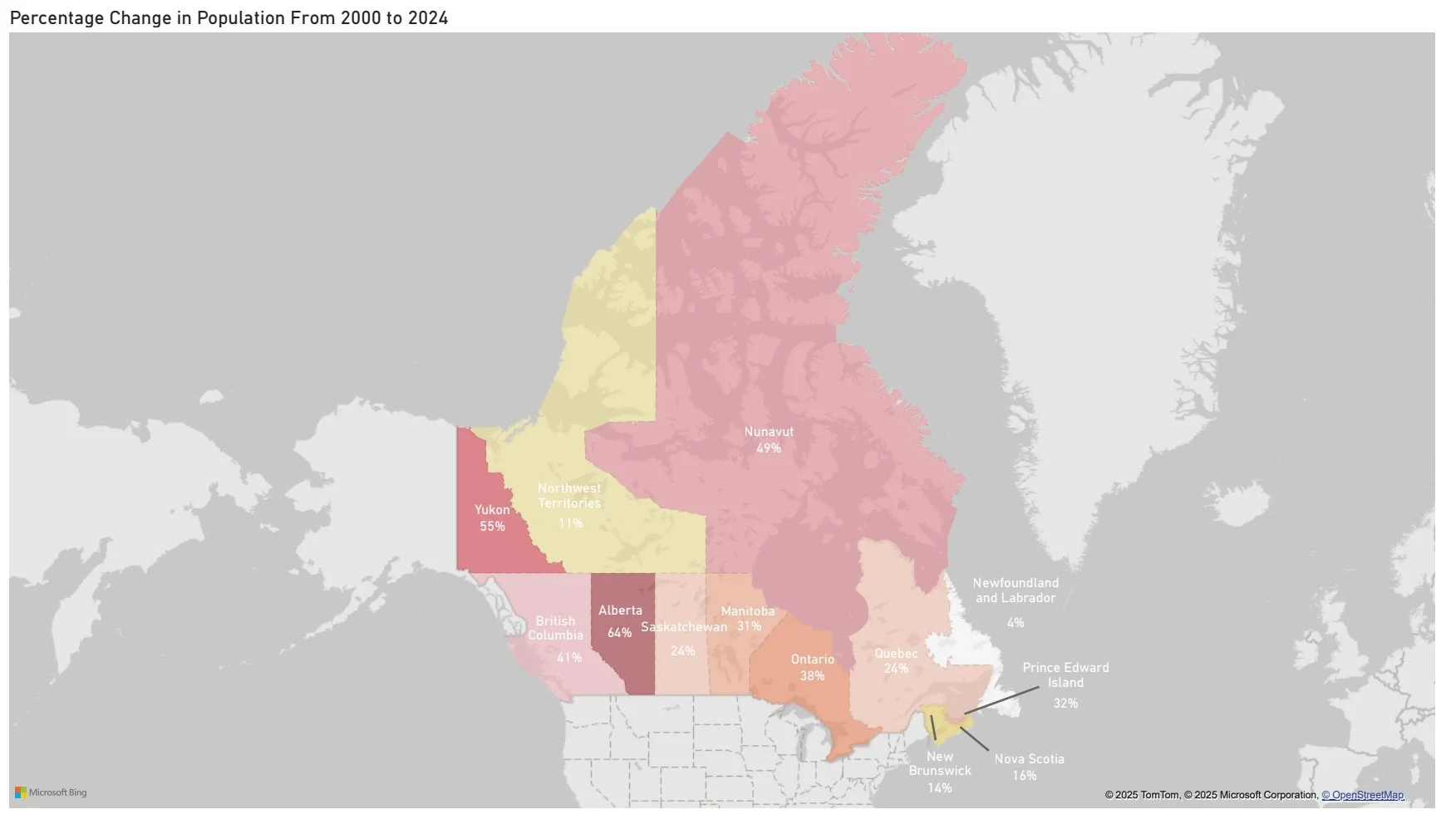 The visualization on this page all demonstrate the percentage change in population in each province and territory of Canada from 2000 to 2024. Which one do you think is the most effective?